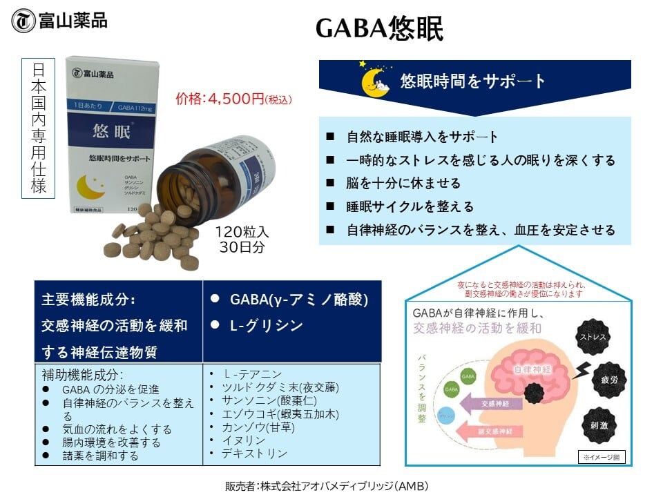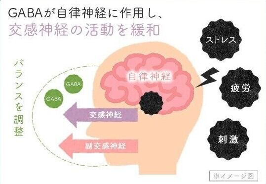 ●ギャバ(GABA):「Gamma-Amino Butyric Acid(γ-アミノ酪酸)」の略)で、人間の脳内にも存在し、緊張やストレスなどをやわらげて、脳の興奮を鎮める働きがあると言われています。また、血圧が高めの方の血圧を下げる機能があることが報告されています。